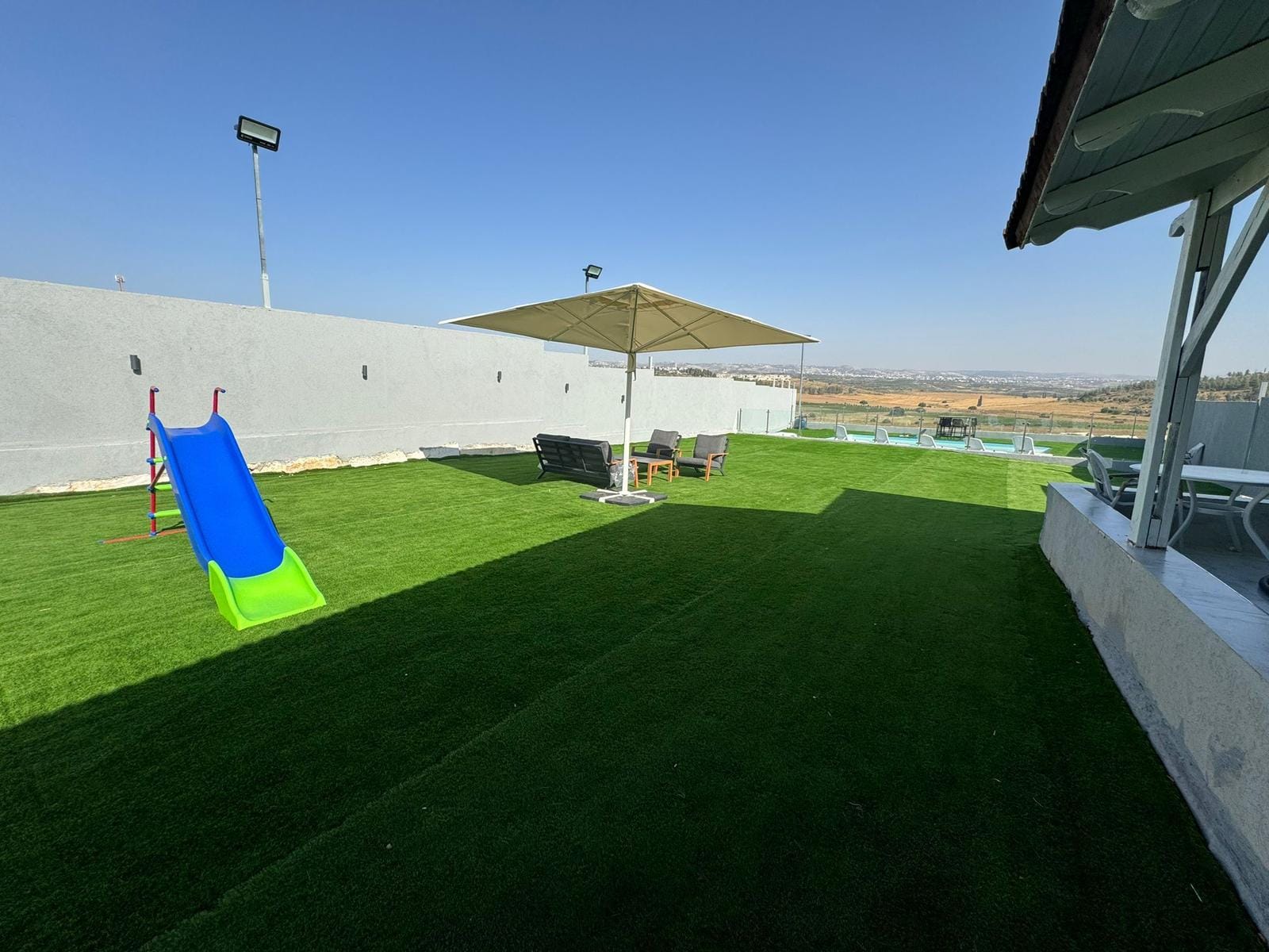 בוילה חצר גדולה עם מגוון מתקנים יחודיים, שולחן פינג פונג, ומדשאות ענק, פינת מנגל מודרנית, ספסלים, בריכה, תאורה לילית, פינות חמד עם נוף מהמהם, ריהוט גן, שימשיה שעושה צל, עצים ופרחי נוי וגן מקסים.